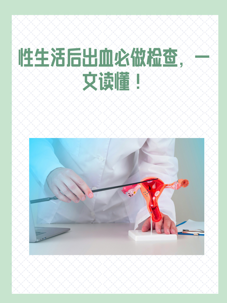 3 宫颈癌宫颈癌早期可能无明显症状,但性生活后出血是其典型表现之一长期HPV感染是主要诱因,需通过宫颈涂片TCT和HPV检测筛查,早期发现可显著提高治愈率4 子宫内膜异位症异位的子宫内膜组织在性生活时受刺激,可能引发出血患者常伴痛经慢性盆腔痛,需通过B超或腹腔镜确诊5 子宫肌瘤较大。