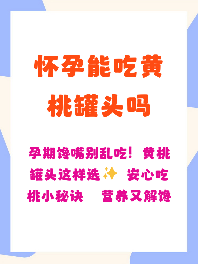 怀孕期间不建议吃黄桃罐头,黄桃罐头中含有香精色素添加剂等物质,可经血液循环传至胎儿体内,不利于胚胎的健康发育,且有致畸的风险黄桃经过加工后,会导致部分营养流失,营养价值低,不能满足妊娠期营养的需求且黄桃罐头中含有大量的糖分,糖在体内代谢会消耗钙,不利于孕妇的营养吸收,影响胎儿的。