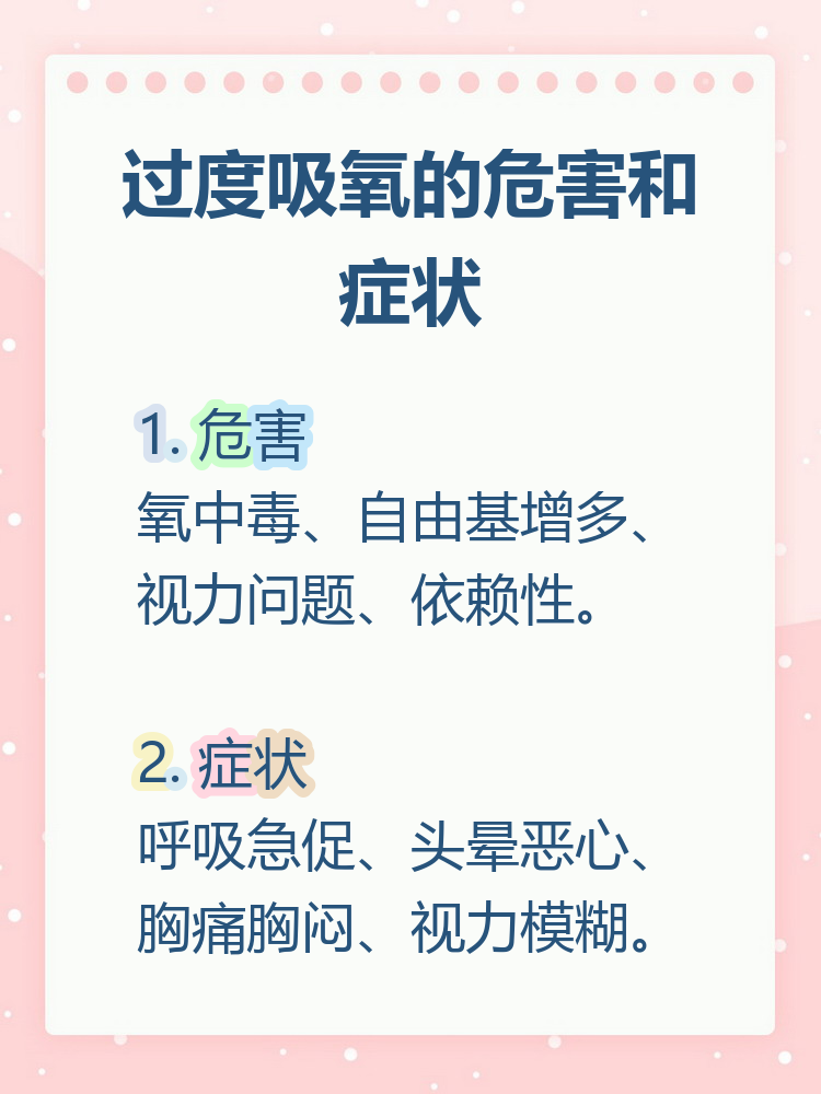 纯氧气吸多了可能会中毒,严重者甚至可能致命氧气中毒的症状多样首先,会出现呼吸道刺激,如咳嗽咳痰胸闷等,这是由于高浓度氧气直接刺激呼吸道黏膜所致其次,可能引发肺损伤,包括肺部炎症肺水肿等,严重时会危及呼吸功能此外,长期或高浓度吸入氧气可能损伤中枢神经系统,表现为头痛头晕恶。
