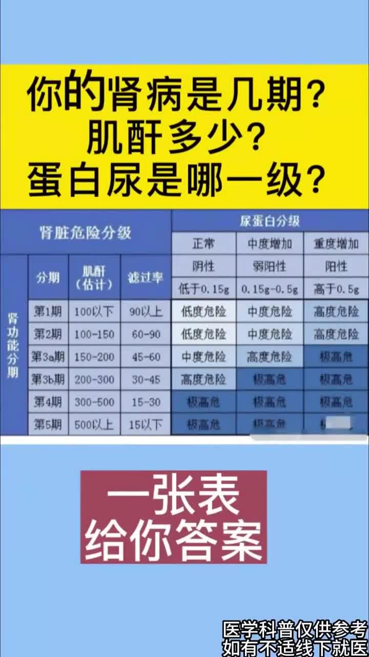 μmoll以下是关于肌酐的一些关键点定义肌酐是人体的代谢废物,主要由肌肉产生,经过肾脏排泄意义肌酐水平是评估肾脏功能的重要指标当肌酐升高时,往往代表肾小球滤过率下降,可能意味着肾功能不全原因肌酐升高的常见原因包括慢性肾炎高血压肾损害糖尿病;正常范围内的肌酐水平反映了肾脏的滤过功能不同人群的正常肌酐范围存在差异成年男性正常范围为53~106μmolL,成年女性为44~97μmolL儿童因生长发育阶段肌肉量不同,肌酐值随年龄变化显著,例如新生儿为18~35μmolL,学龄儿童为44~97μmolL尿毒症阶段肌酐指标的病理特征当肾功能严重受损进入;肌酐指标男性正常值是53106μmolL,女性是442884μmol正常人的血清肌酐是蛋白质代谢的产物,蛋白质有机体自身含有的蛋白质和外源性摄入的蛋白质,蛋白质在体内代谢成肌酐以后,需要从肾脏排出体外,所以体内的肌酐维持在正常的水平对于肌酐每个医疗单位的参考范围不同如果想要了解肾功能是否。