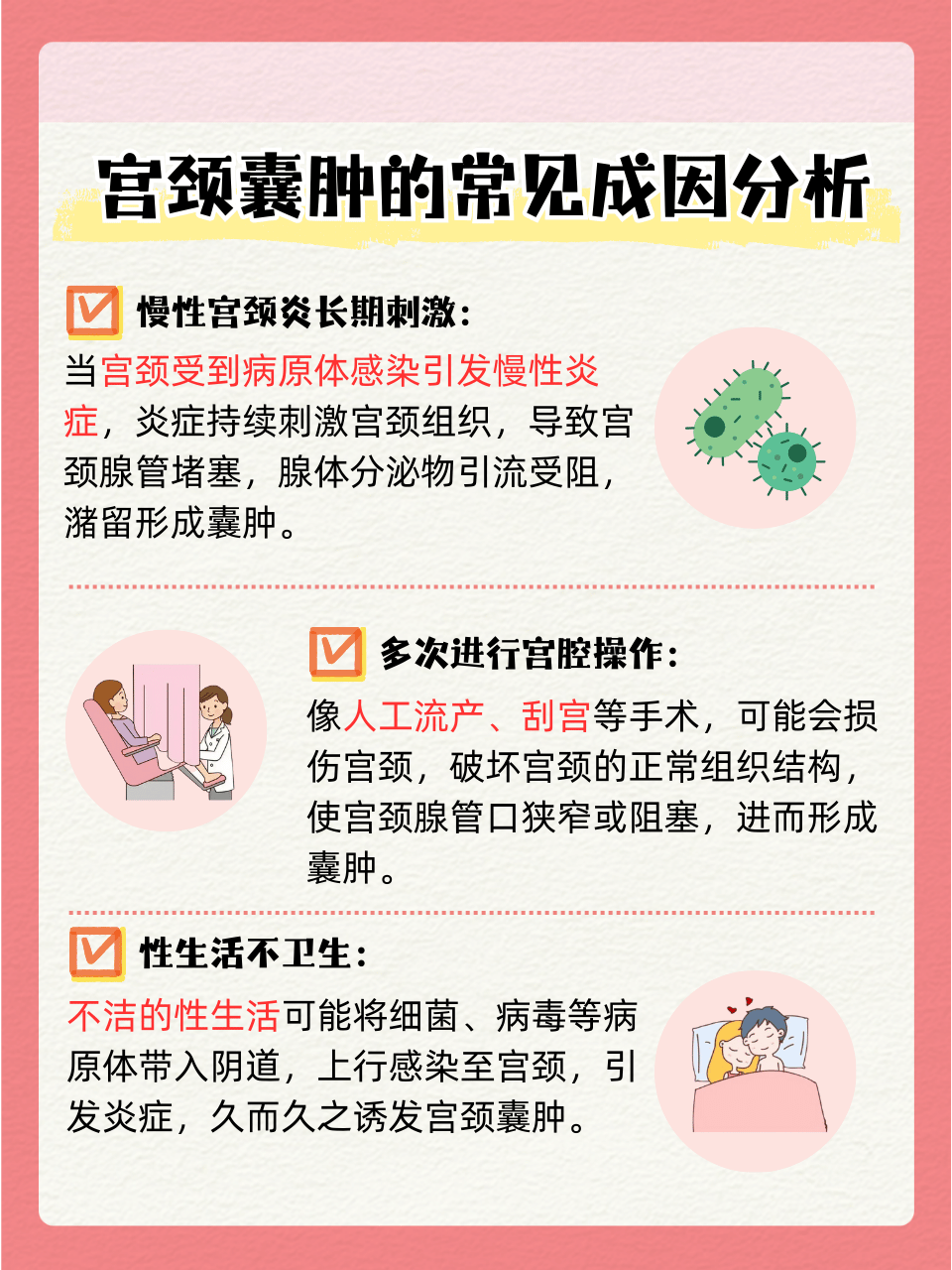 宫颈腺体囊肿的形成原因较为复杂,主要包括以下几方面1 宫颈炎症宫颈炎症是导致宫颈腺体囊肿的主要原因之一当宫颈受到细菌病毒等病原体感染,或因机械性损伤引发炎症时,腺体开口可能因炎症反应而狭窄或堵塞,导致腺体分泌物无法正常排出,积聚形成囊肿2 宫颈损伤宫颈损伤如刮宫术分娩物理治疗。