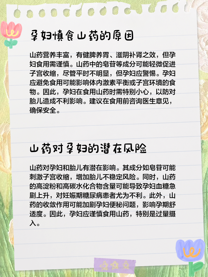 1 适量食用每次食用山药的量不宜过多,建议控制在100200克左右2 烹饪方式选择蒸煮等易消化的烹饪方式,避免油炸或过于油腻的做法3 搭配其他食物可以搭配一些易消化的食物,如蔬菜瘦肉等,减轻消化负担4 观察身体反应如果孕妇在食用山药后出现胀气或其他不适,可以减少摄入量或;孕妇是可以吃山药的山药作为一种中药材兼进补食材,对孕妇具有多方面的益处,以下是对孕妇吃山药的具体解析一山药的健脾益气功效 山药能够健脾益气,这对于孕妇来说尤为重要孕期,由于身体变化和营养需求的增加,孕妇的脾胃功能可能会受到影响适量食用山药,可以帮助孕妇改善脾胃功能,促进食物的消化和吸收,为胎儿提供充。