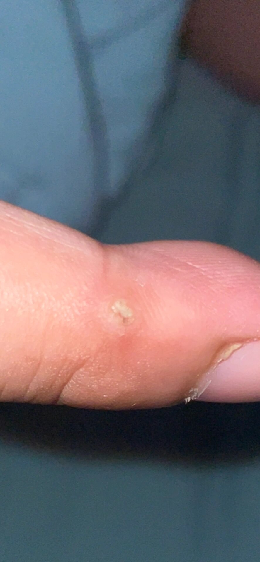 根据描述考虑为瘊子,瘊子症状初起表现为针尖大的丘疹,渐渐扩大到豌豆大或更大,呈圆形或多角形,表面粗糙,角化明显,质坚硬,呈灰黄污黄或污褐色好发于手指手背足缘等处瘊子数目不等,初起多为一个,以后可发展为数个到数十个一般无自觉症状,偶有压痛病程慢性,部分可自愈目前。