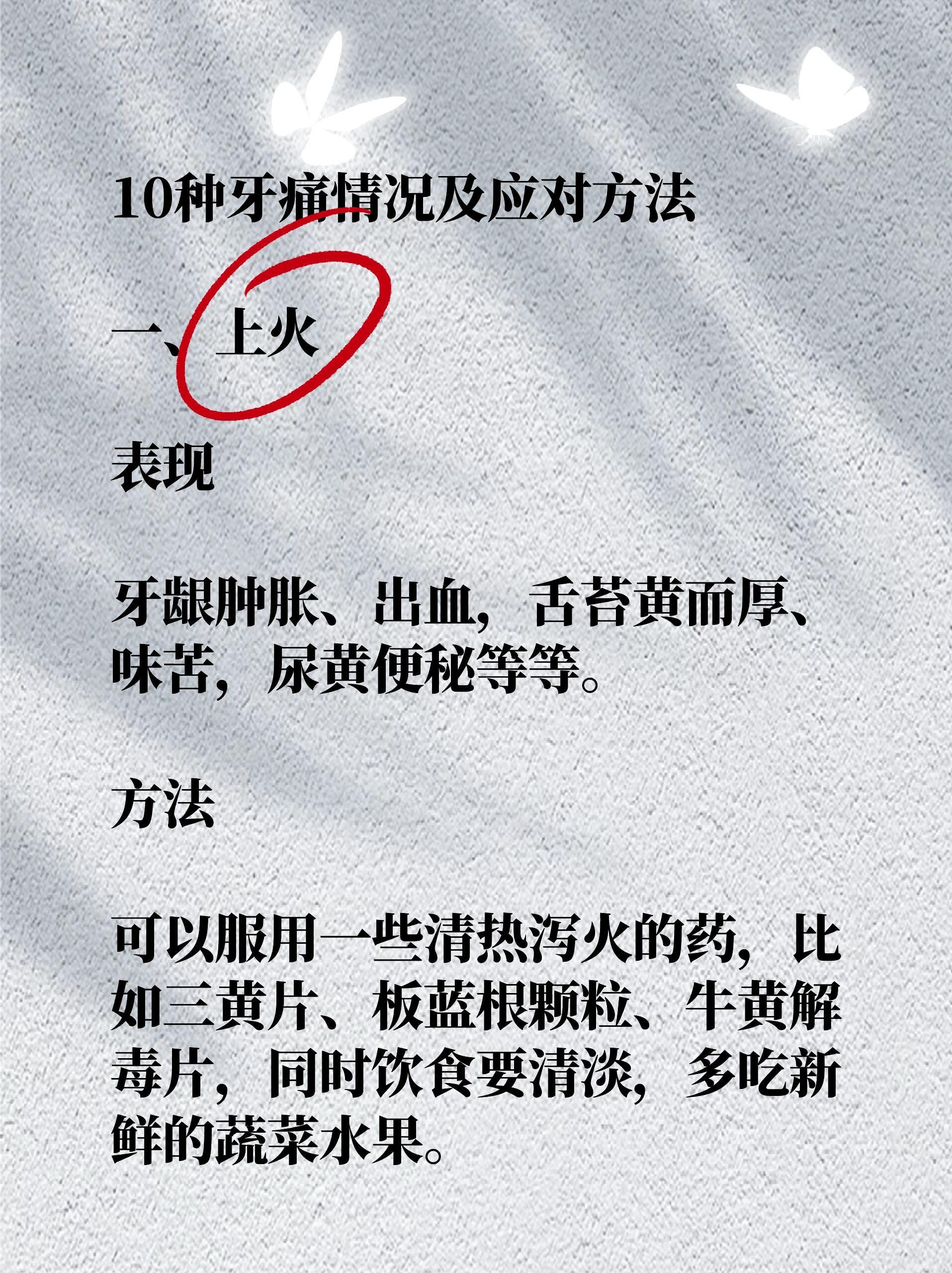 4、经常牙痛的原因主要包括以下几点1 智齿萌出困难 1718岁以后,智齿开始萌出由于颌骨空间有限,智齿增长困难,常在智齿牙冠周围形成较深的盲袋 滞留的食物残渣和软垢容易引发细菌反复感染,从而造成肿痛2 口腔卫生习惯较差 牙面上堆积的食物残渣可与唾液结合形成结石,这些结石会刺激牙龈,导致;牙痛主要由口腔局部因素和非口腔局部因素引起,特殊人群治疗时需特殊考量口腔局部因素龋齿是常见原因,细菌产酸腐蚀牙齿形成龋洞浅龋遇刺激时疼痛,刺激去除后消失深龋接近牙髓时疼痛加剧,可能伴食物嵌塞痛儿童和老年人高发,儿童因甜食摄入多口腔卫生差,老年人因牙龈萎缩根面龋风险高牙髓;牙痛的原因主要包括以下几类1龋齿龋齿是牙痛最常见的原因之一,由细菌侵蚀牙齿导致牙体硬组织破坏初期可能无明显症状,但随着龋洞加深,细菌侵入牙本质甚至牙髓,会引发持续性疼痛,尤其在进食冷热刺激时加重若未及时治疗,龋齿可能发展为更严重的感染2牙髓炎与根尖周炎牙髓炎是牙髓组织含神经和血管的炎症,通常由龋齿未。
