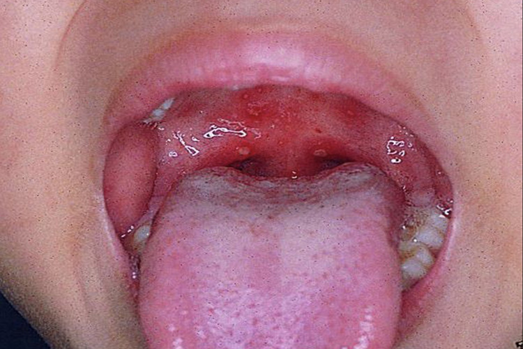 12、咽峡炎是指因峡部的炎症,包括悬雍垂扁桃体腭咽弓腭舌弓等部位,多有细菌感染引起的,可表现为咽部疼痛吞咽时加重发热张口受限流口水异物感等,检查时可见咽部黏膜充血肿胀,腭咽弓及腭舌弓也充血肿胀,扁桃体可肿大,表面可有脓性分泌物附着,有时扁桃体被推向一侧,悬雍垂也出现。