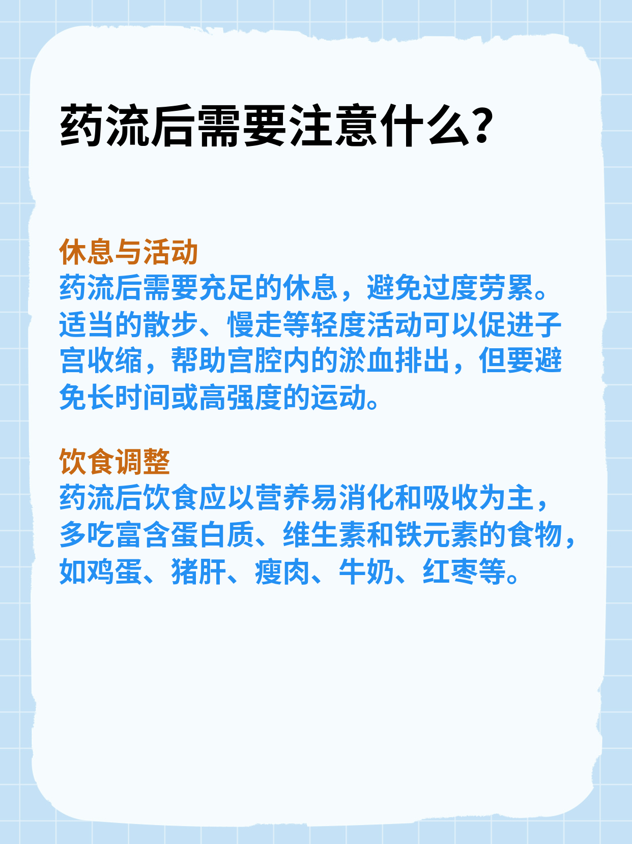 药流后阴道流血通常持续12周,但具体时间因人而异以下是相关注意事项的详细说明出血时间与异常判断药流后阴道流血一般持续12周,但部分女性可能因个体差异如子宫收缩能力孕囊排出情况出现时间稍长或稍短若出血时间超过2周,或出血量突然增大如1小时内浸透多片卫生巾颜色鲜红且伴有;药流后阴道流血通常7~10天干净,但具体时间因人而异若流血时间超过10天,或出血量明显大于正常月经量,需及时就医流血时间延长可能与以下原因有关1药流不全子宫内残留胚胎组织会持续刺激子宫内膜,导致不规则出血2子宫收缩不良药流后子宫需通过收缩恢复至孕前状态,若收缩乏力,可能导致出血。