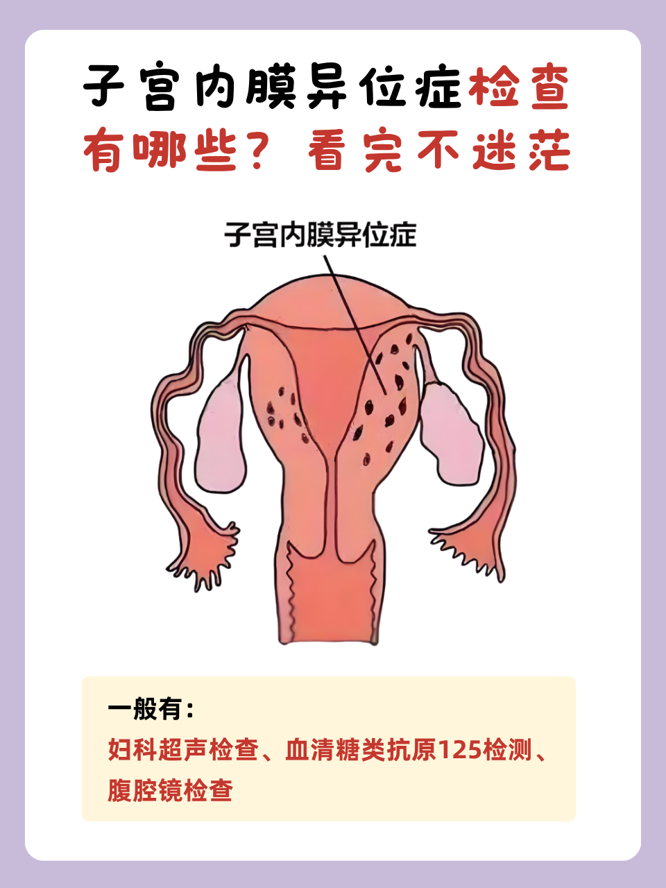 2、子宫内膜异位症的检查方法主要包括影像学检查血清学检查及腹腔镜检查,具体如下影像学检查超声检查经腹部超声是常用初筛手段,可初步观察子宫卵巢等盆腔器官,发现较大的子宫内膜异位囊肿表现为附件区无回声或低回声区,边界清晰,但对微小病灶易漏诊经阴道超声对盆腔内病变的观察更清晰,尤其。