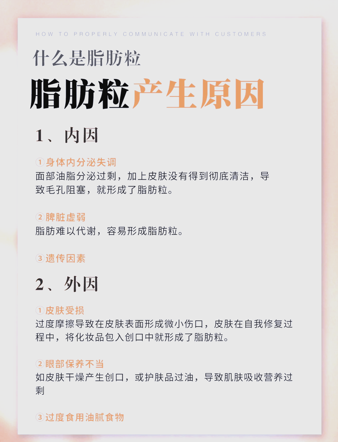 适度去角质油性皮肤每周12次,干性敏感性皮肤每23周1次,防止角质堆积堵塞毛孔,但需避免频繁操作损伤皮肤2物理去除消毒后针挑仅适用于粟丘疹需严格消毒皮肤和粉刺针,轻挑表皮后取出黄白色颗粒,操作时避免用力过猛,眼部周围建议由专业人员处理激光治疗通过激光能量击碎脂肪粒并代谢。