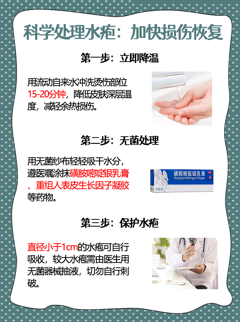 3、烫伤在日常生活中发生的频率非常高,老人被低温烫伤的处理办法是什么你知道吗,在生活中一旦不注意就会发生低温烫伤,老人被低温烫伤水泡多久会好呢一起和裕祥安全网看看吧一般的低温烫伤一周就会痊愈,严重的需要手术治疗,我们要根据烫伤的情况决定治愈的时间,一起看看吧水泡是二度烫伤的表现 当患者被;宝宝手指烫伤弯曲的恢复时间通常为3 6个月不过,这一时间并非绝对,会受到多种因素的影响如果宝宝手指烫伤后出现了严重的瘢痕增生以及严重的畸形情况,那么恢复时间可能会更长这是因为严重的瘢痕和畸形会影响手指的正常结构和功能,需要更复杂的治疗和更长的修复过程,必要时可能需要进行手术矫正;重度疤痕弯曲对于没有进行及时治疗的疤痕,以及程度比较严重的疤痕挛缩,非手术治疗可能效果不佳这种情况下,通常需要进行手术治疗才能够解除手指运动的限制手术后的恢复时间会根据手术的具体情况和宝宝的个体差异而有所不同,但一般会比非手术治疗需要更长的时间综上所述,宝宝手指烫伤弯曲的恢复时间。