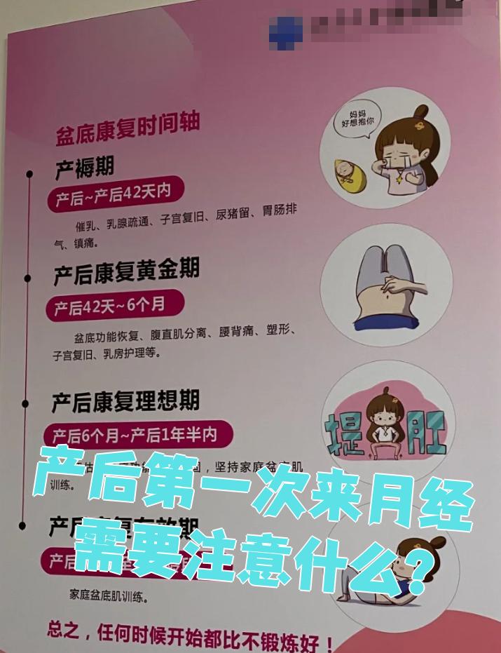 6、饮食不吃生冷酸辣等刺激性食物,多饮开水,保持大便通畅用品准备由于产后第一次月经量可能会较多,建议准备好夜用卫生巾,并随身携带以备不时之需精神状态保持精神愉快,避免精神刺激和情绪波动个人卫生注意卫生,勤换卫生巾,预防感染同时注意保暖,避免寒冷刺激,并避免过度劳累暂停。