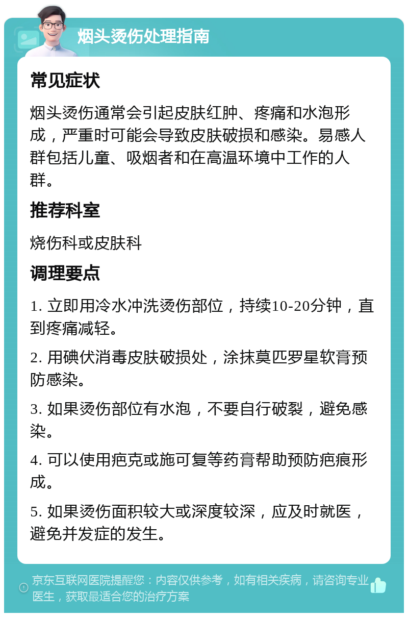 儿童皮肤薄嫩,烫伤后易引发深度损伤,需立即冲洗并尽快就医,禁止自行涂抹药膏孕妇避免使用含激素或抗生素的烫伤膏,就医时需主动告知妊娠状态老年人皮肤愈合慢,需每日观察伤口,若出现脓性分泌物异味等感染征象,需及时处理预防提示日常需远离高温油锅蒸汽等危险源,使用隔热手套或面罩。