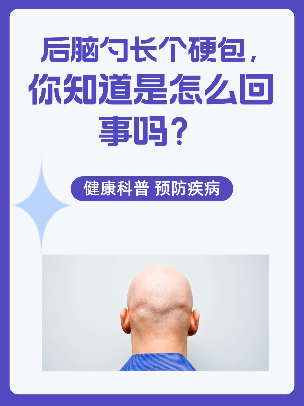 6、后脑勺硬包像骨头凸起,可能存在以下两种情况一正常解剖结构若硬包无疼痛红肿等异常症状,且位于后脑勺正中央,通常为枕外粗隆枕外隆突这是颅骨愈合过程中形成的正常骨性凸起,属于人体解剖结构的自然表现每个人均存在此结构,但凸起程度存在个体差异,与遗传颅骨发育等因素相关,无需特殊。