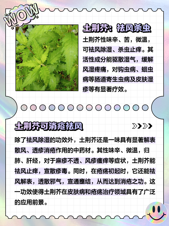 荆芥的功效总结如下祛风解表,药性温和荆芥在发散风寒类药中温性最弱,药性最为温和,因此适用于风寒感冒风热感冒及温病初期的卫分阶段其解表作用不局限于寒证或热证,而是通过温和发散实现表邪的疏解清头目利咽喉止痒消疮肿荆芥的祛风作用兼具散热功能,常用于治疗风邪侵袭上部如头目咽喉。
