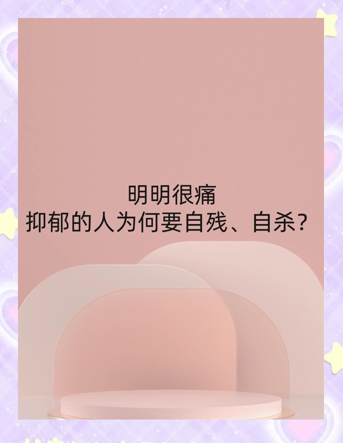 就可能会选择极端的方式来结束自己的生命抑郁症患者可能会因为无法忍受内心的痛苦和孤独而做出极端的行为这些行为可能是他们试图寻求解脱的一种方式对于抑郁症患者来说,及时寻求专业帮助和支持是非常重要的只有这样,他们才能得到适当的治疗和帮助,从而摆脱抑郁症的困扰;为何抑郁症患者会自残与这5点有关 1兴奋点短路对于抑郁症患者来说,有一种丧失了快乐能力的无力感,专业解释就是“ 兴奋点短路”,而通过自虐自残等伤害自己的行为,可以刺激到神经,获得一种病态的精神上的愉悦感尤其当情绪跌落到谷底时,通过自残可以让自己的内心得到释放! 2自杀的一种代替自己身心非常痛苦,有过;患者可能会认为自己有罪,活着只是为别人增添麻烦和负担,比如拖累了家人这种自责自罪的心理状态可能促使患者希望早日解脱,从而产生自杀行为难以忍受的痛苦抑郁症患者不仅精神上饱受折磨,还可能伴随躯体症状的痛苦这些痛苦的体验令患者度日如年,有强烈的生不如死的感觉为了摆脱这种难以忍受的痛苦;认知扭曲会进一步加剧自杀意念患者常以消极视角解读自身经历,例如将失败归因于“自身无能”,对未来产生“永远无法好转”的悲观预期这种扭曲的认知模式使其难以发现生活中的积极因素,甚至将死亡视为“唯一解脱”自杀倾向是抑郁症的极端表现当患者长期承受无法缓解的痛苦绝望和无助感时,可能将死亡。