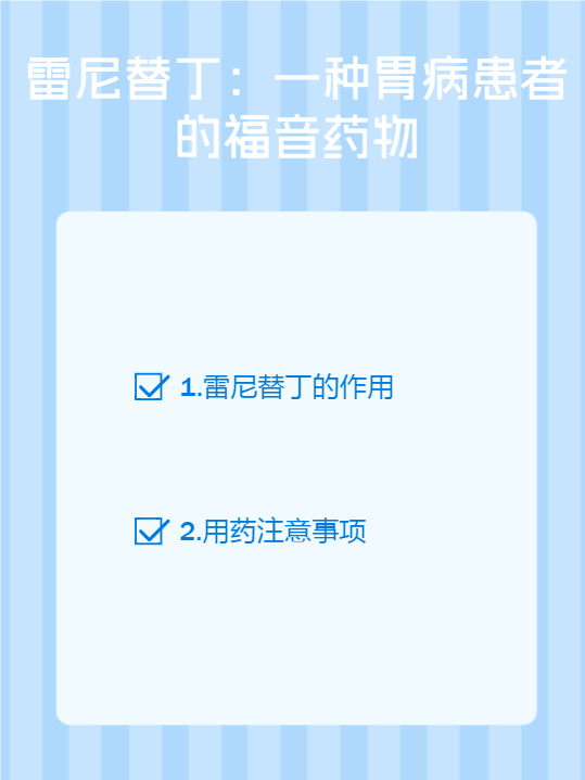 盐酸雷尼替丁胶囊的作用如下1抑制胃酸分泌盐酸雷尼替丁胶囊作为组胺H2受体拮抗剂,能特异性阻断胃壁细胞上的H2受体,抑制胃酸分泌的关键酶H#8314,K#8314ATP酶活性,从而减少胃酸生成这一机制直接降低胃内酸度,为治疗胃酸相关疾病提供基础2缓解胃痛和烧心胃酸过多会刺激胃黏膜及食管。