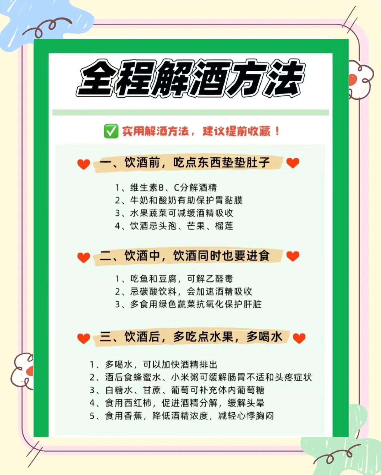 1 香蕉香蕉富含钾元素,可补充因饮酒导致的钾流失,缓解酒后心悸胸闷等不适尤其适合饮酒后出现电解质失衡的人群2 葡萄葡萄中的酒石酸能与乙醇结合形成酯类物质,加速酒精代谢同时,其维生素C成分具有保肝作用,可减轻肝脏负担3 西瓜西瓜具有清热利尿的功效,能促进酒精通过尿液排出,缓解醉酒。