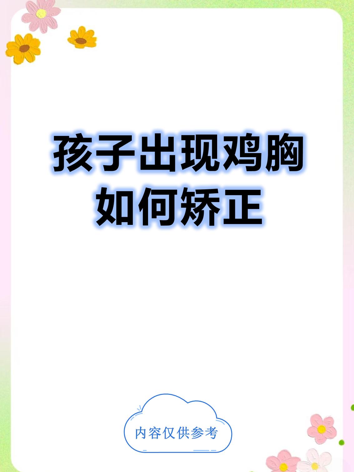 小儿鸡胸需根据年龄和病情严重程度采取针对性措施,3岁前以治疗佝偻病为主,3岁后以矫正畸形为主,重度鸡胸需考虑手术具体如下鸡胸的危害鸡胸表现为胸骨前凸两侧胸壁低平,轻者影响外观,重者导致胸廓容积缩小肺发育受限8岁前患儿可能出现肺泡量异常反复气管炎或肺炎运动耐受力差及免疫力低。