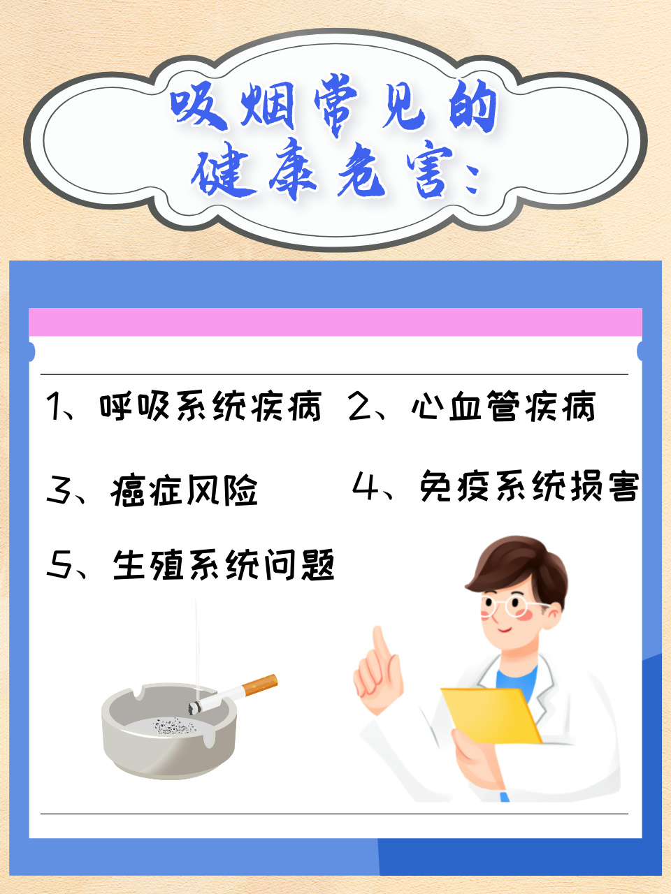 首先,精子数量和活力下降烟草中的有害物质如尼古丁焦油一氧化碳等会直接损伤睾丸生精功能,导致精子生成减少,同时降低精子的运动能力,使其难以穿越女性生殖道与卵子结合,从而显著降低受孕概率其次,精子畸形率增加吸烟会干扰精子细胞分裂过程,导致精子形态异常如头部缺陷尾部卷曲等;男性抽烟对怀孕的危害主要体现在以下两方面一对精子质量的直接影响烟中的尼古丁是主要有害成分,它对精子具有显著的杀伤作用研究表明,尼古丁会干扰精子的生成过程,导致精子数量减少形态异常如头部缺陷尾部卷曲等,并降低精子的活力与运动能力对于精子质量本就较差的男性,吸烟会进一步加剧问题。