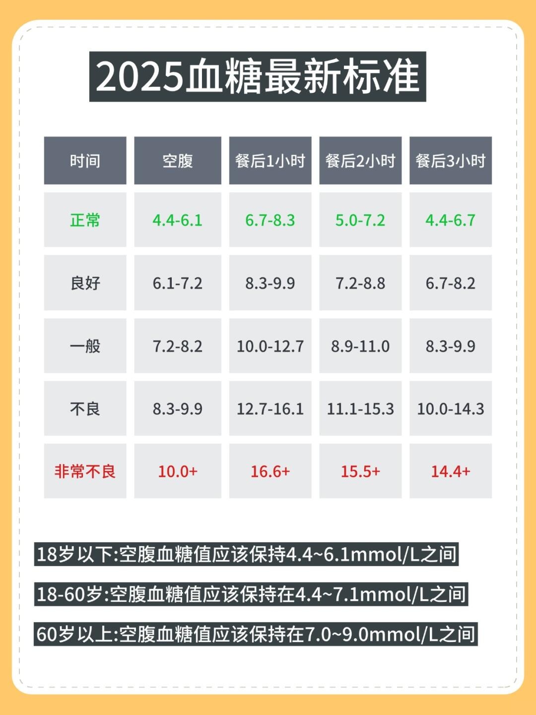 12、血糖正常值因人群而异,一般空腹血糖为3961mmolL,餐后2小时血糖小于78mmolL,特殊人群需根据具体情况判断,具体如下一般人群血糖正常值空腹血糖指隔夜空腹至少8~10小时未进任何食物,饮水除外后,早餐前采血检测的血糖值,正常范围一般为39~61mmolL此范围基于大量健康人群。