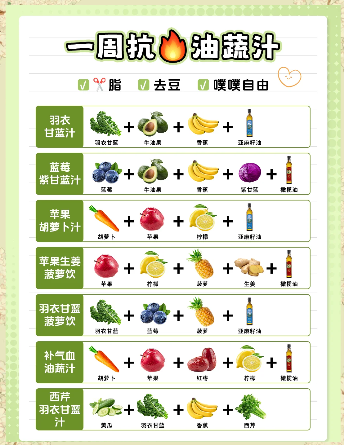 清热解火苦瓜具有清热解火的功效,能够改善口干舌燥的症状,同时也有助于调节体内环境,促进新陈代谢改善皮肤胡萝卜富含维生素A和抗氧化物质,能够改善皮肤暗沉,使肌肤更加光滑细腻在减肥的同时,还能兼顾美容效果综上所述,香蕉苹果汁和苦瓜胡萝卜汁都是辅助减肥的良好选择但请注意,果汁或;减肥时可选择葡萄柚杨梅汁西芹甜椒汁小黄瓜白菜甜椒汁等果蔬汁,这些饮品以低脂高纤维富含维生素的果蔬为原料,既能辅助降脂减肥,又能补充营养以下是具体推荐及制作方法一推荐果蔬汁及功效葡萄柚杨梅汁 配料杨梅15颗,葡萄柚半个功效葡萄柚含天然果胶,可降低胆固醇降血脂杨梅富含。