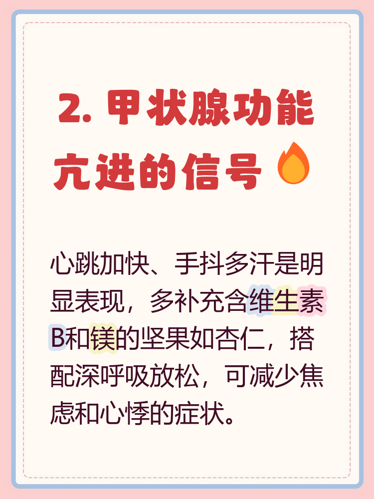 其他潜在症状甲状腺功能低下还可能引发体重增加因代谢率降低便秘肠道蠕动减缓记忆力减退脑代谢异常情绪低落神经递质失衡等非特异性表现儿童患者可能出现生长发育迟缓,成人则可能合并月经紊乱或性欲减退注意事项若出现上述症状,尤其是多系统受累如同时存在乏力畏寒皮肤改变时。