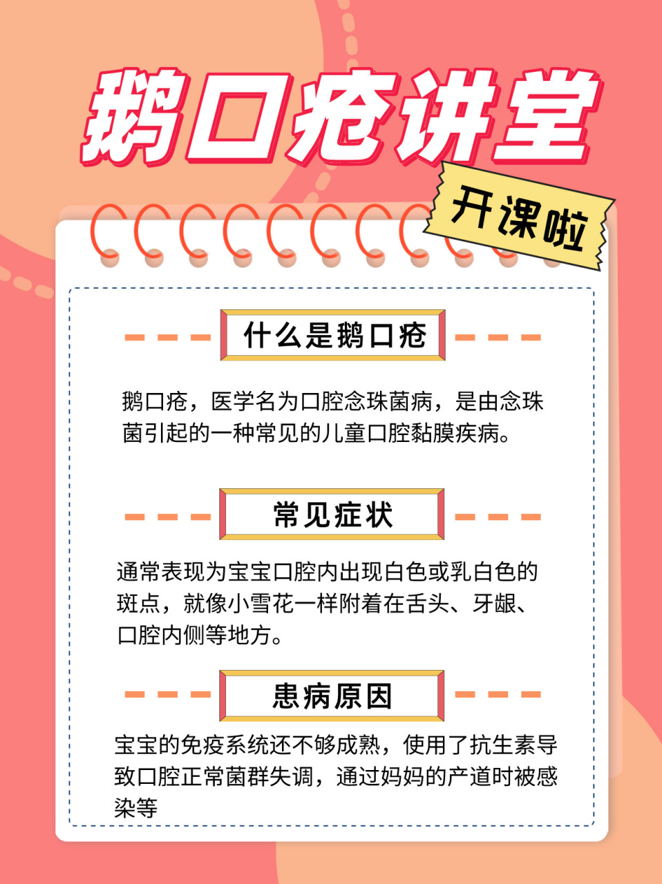 鹅口疮是由白色念珠菌感染引起的以下是关于鹅口疮的详细解释病原体鹅口疮的主要病原体是白色念珠菌,这是一种常见的真菌,可以在人体口腔肠道阴道等部位寄生,但在某些条件下会过度增殖导致疾病感染部位鹅口疮主要在婴幼儿的上腭舌头颊黏膜等部位形成雪花样白色斑块,这些斑块较难去除。