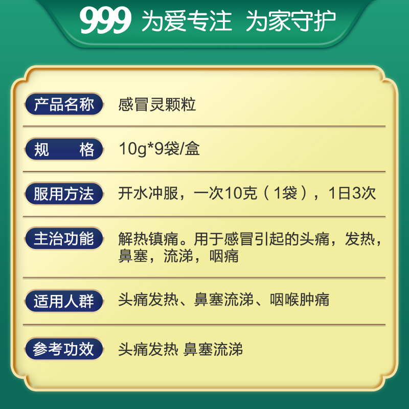 999感冒灵颗粒的主要功效是清热镇痛,主要适用于治疗感冒所引起的多种症状以下是具体功效及注意事项治疗感冒症状999感冒灵颗粒能有效缓解感冒导致的鼻塞流鼻涕打喷嚏咽痛四肢酸痛发热等症状成分解析该颗粒为复方制剂,主要成分包括对乙酰氨基酚马来酸氯苯那敏三叉苦金盏银盘以及野。