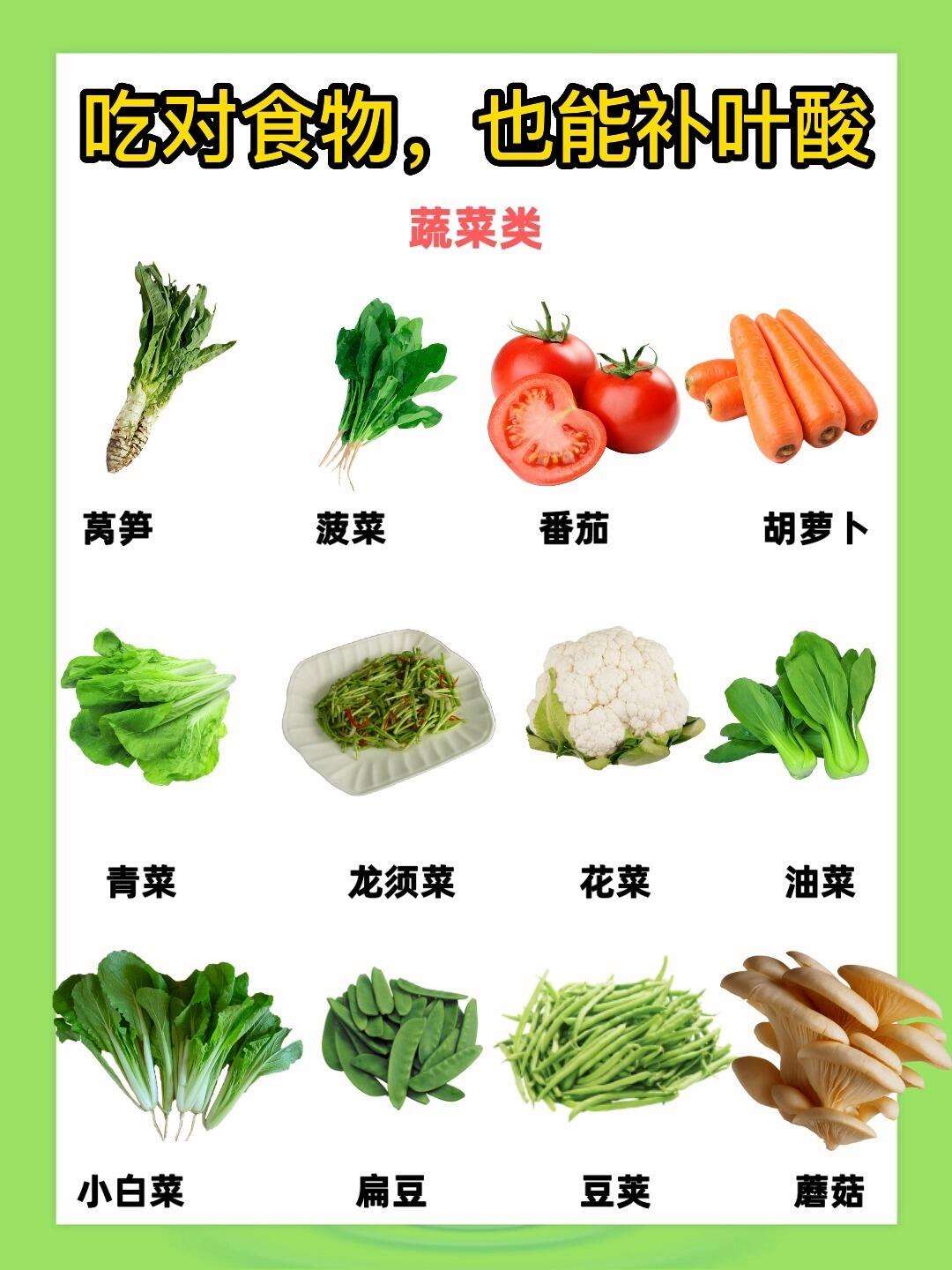 5、以下食物富含叶酸,可根据不同类别进行选择蔬菜类绿叶蔬菜中,菠菜每100克含叶酸约194微克,西兰花约120微克,生菜约40微克豆类蔬菜中,四季豆每100克含叶酸约239微克,豆角约185微克其他蔬菜如芦笋每100克含叶酸约190微克,南瓜约49微克,胡萝卜约45微克烹饪时建议采用凉拌快炒等方式,避免长;动物食品类动物肝脏如猪肝肾脏,以及禽肉如鸡肉畜肉如牛肉羊肉和蛋类,均含有一定量的叶酸其中,动物肝脏的叶酸含量尤为突出豆类及坚果类黄豆及其制品如豆腐豆浆富含叶酸,核桃腰果栗子杏仁松子等坚果类食物也含有较高的叶酸谷物类全麦面粉大麦米糠。