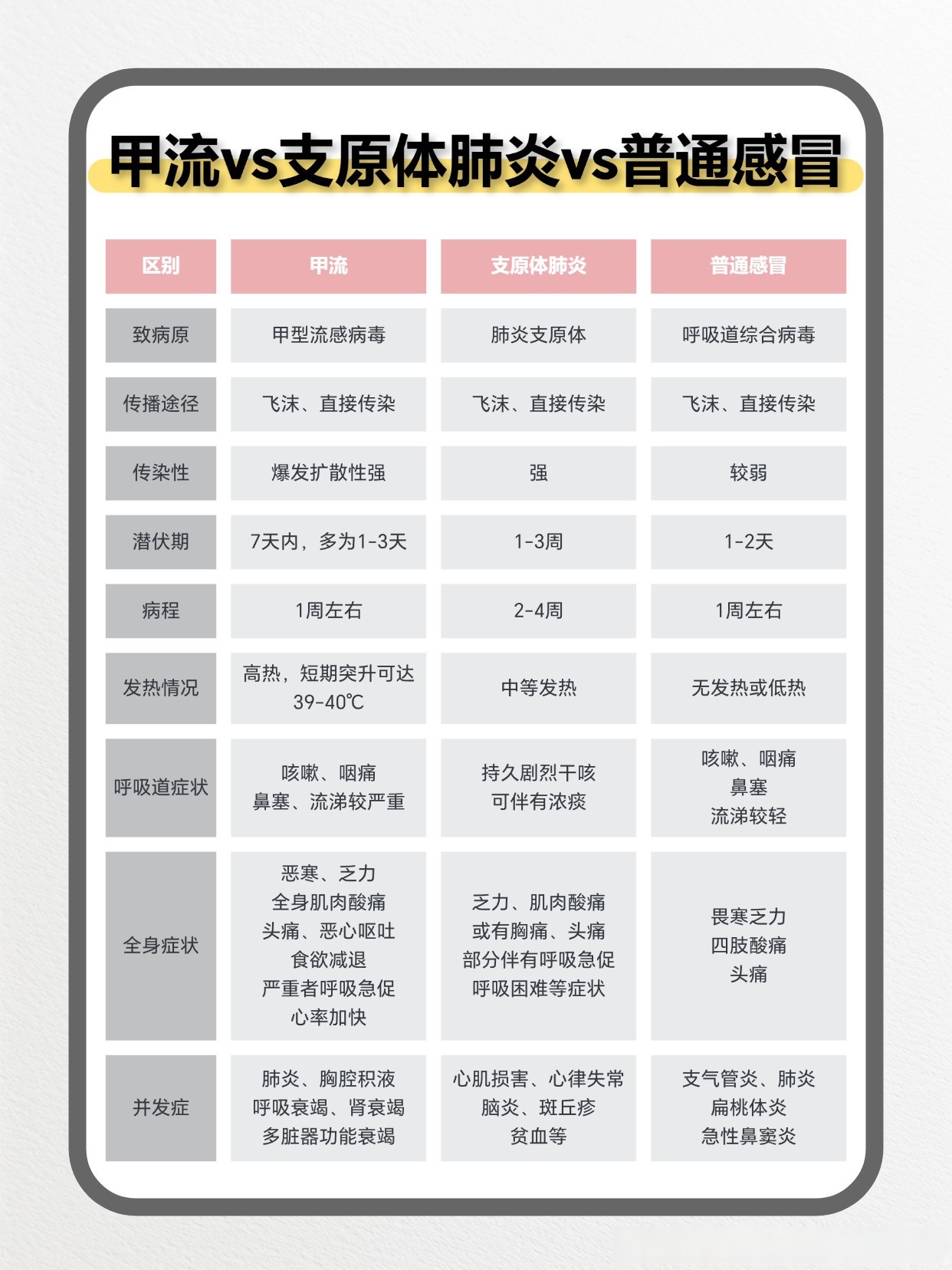 持续高热3天以上剧烈咳嗽,咳脓痰血痰,或胸痛呼吸频率快,呼吸困难,口唇紫绀神志改变反应迟钝嗜睡躁动惊厥等严重呕吐腹泻,出现脱水表现影像学检查有肺炎征象肌酸激酶CK肌酸激酶同工酶CKMB等心肌酶水平迅速增高原有基础疾病明显加重。