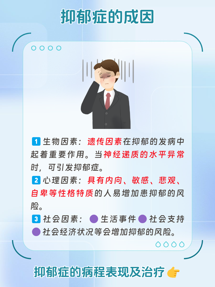 有一句歌词说,就是ldquo把所有问题都自己扛rdquo举一个众所共知的例子就是著名女作家三毛,还有曹雪芹笔下的林黛玉,她们都是多愁善感的典型如果是风风火火敢做敢为的人,就不会患上抑郁症除了上述两个因素外,社会因素也是形成抑郁症的一个重要原因用专家的话说是成年期遭遇了应激性的生活事件,也是容易导致出现具体临床。