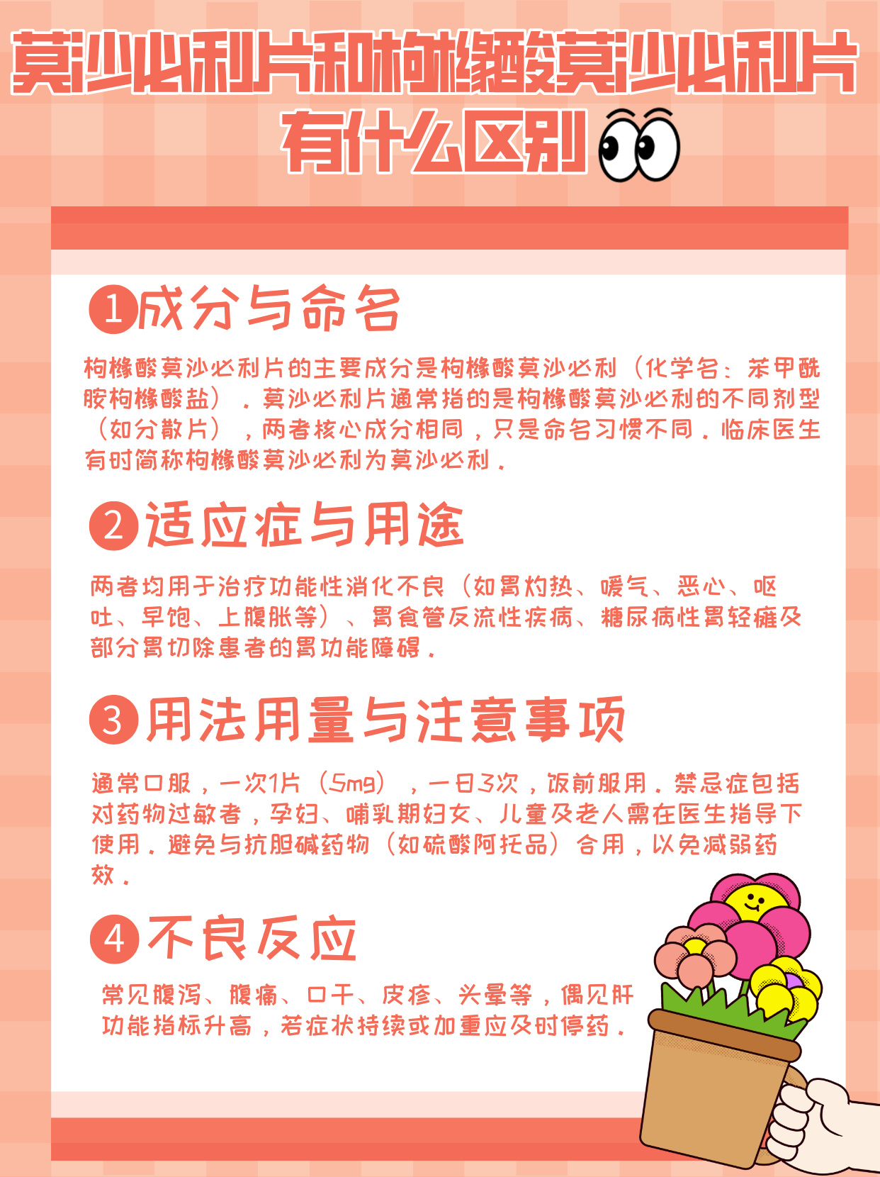 适用范围方面枸橼酸莫沙必利片主要用于功能性消化不良伴随胃烧心呃逆恶心想吐呕吐早饱上腹胀等消化道症状也可用于反流性食道炎病症糖尿病性胃轻瘫及一部分胃切除病人的胃功能问题西沙必利片适用范围更广,包括提升胃肠动力,用于胃轻瘫综合症,或上消化道不适感但X线内镜检查呈。