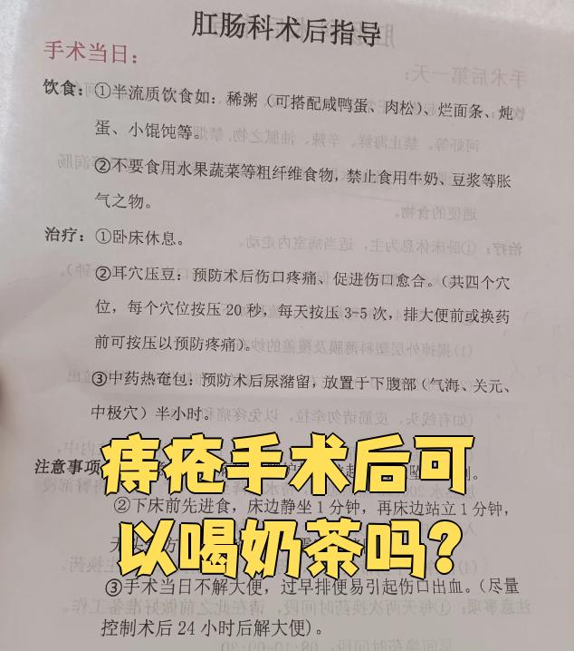 3、痔疮手术后需注意伤口护理饮食调理排便管理休息与活动并发症观察,特殊人群还需遵循额外注意事项,具体如下伤口护理保持清洁术后需保持手术部位清洁,严格遵医嘱定期换药换药时,仔细留意伤口有无渗血渗液红肿等异常状况,一旦发现异常,及时向医生反馈,以便及时处理如厕后清洗如厕后;痔疮手术后饮食需注意以下方面短期饮食限制术后初期术后短期内,患者需避免食用干硬难以消化的食物,如坚果粗粮饼干等这类食物可能增加肠道负担,导致粪便干结,排便时刺激手术创面,引发剧烈疼痛甚至出血同时,必须严格忌食辣椒花椒等辛辣调料,以及酒精类饮品,因辛辣物质和酒精会直接刺激;痔疮手术后饮食护理需注意以下几点1 以清淡易消化食物为主术后初期应选择小米粥面条面包等软质或流质食物,减轻肠道负担,避免刺激手术部位这类食物易于消化吸收,可减少排便时的摩擦与疼痛2 严格禁忌刺激性食物需完全避免辣椒花椒大蒜等辛辣调料,以及螃蟹鱼虾等易致敏的海鲜类食物;痔疮手术后饮食需分阶段调整,并注重营养均衡与卫生,具体如下1 术后初期清流食阶段术后需待肛门排气放屁后,方可开始进食首选清流食,如米汤稀藕粉过滤果汁避免含籽水果等此类食物易消化,不会刺激伤口,同时可为身体提供基础能量需避免牛奶豆浆等易产气食物,防止腹胀影响恢复;痔疮手术后需从以下方面注意护理一伤口护理保持伤口清洁是预防感染的关键便后需用温水或医生推荐的坐浴液清洗肛门,避免残留粪便刺激伤口术后短期内避免剧烈运动如跑步提重物,以防伤口裂开或出血同时,需严格遵循医嘱更换敷料,确保伤口干燥,促进愈合二饮食调整饮食需以促进排便减少。