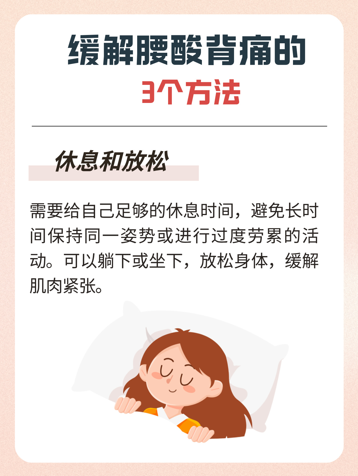 3、针对腰酸软的问题,可以采取以下措施进行缓解1 注意休息与保暖 保证充足休息避免过度劳累,给腰部足够的恢复时间 加强保暖避免腰部受凉,以免加重酸软症状2 调整生活习惯 睡硬板床有助于保持腰部正常的生理曲度 端正姿势避免长时间保持同一姿势,尤其是长时间坐立和弯腰 避免重复动作。