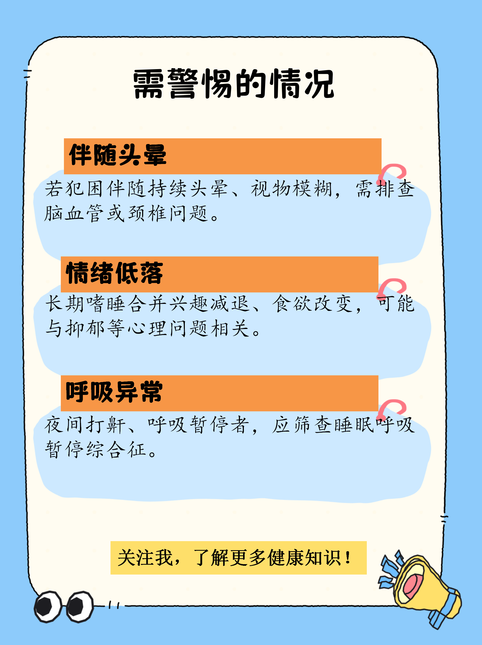 嗜睡的原因主要包括生理性因素病理性因素及特殊人群特点,具体如下一生理性因素睡眠不足与作息紊乱长期熬夜夜间睡眠质量差如睡眠呼吸暂停或睡眠时间不足,会使机体处于疲劳状态,导致白天嗜睡例如,成年人正常需7~9小时睡眠,若长期每晚睡眠不足6小时,易引发日间嗜睡此外,长期昼夜颠倒。