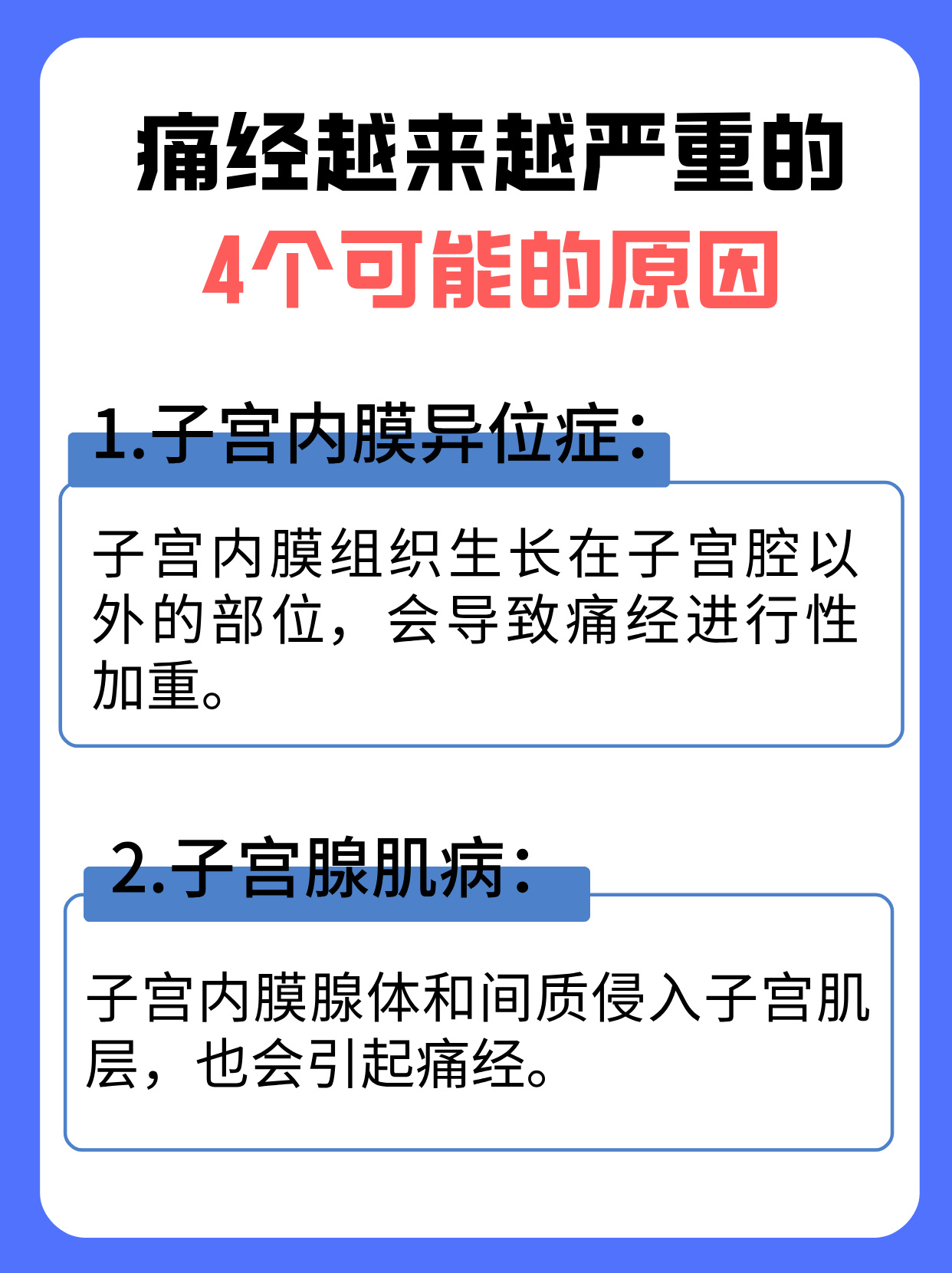 痛经严重的原因有多种,主要包括以下几点子宫内膜异位症这是导致痛经发作的一个重要原因子宫腺肌症同样是引起痛经的常见因素子宫肌瘤子宫肌瘤也可能导致严重的痛经粘连宫颈宫颈口粘连,以及宫颈糜烂或宫颈息肉,都可能引起严重的痛经盆腔感染如慢性盆腔炎附件炎等,这些炎症会引起痛经。