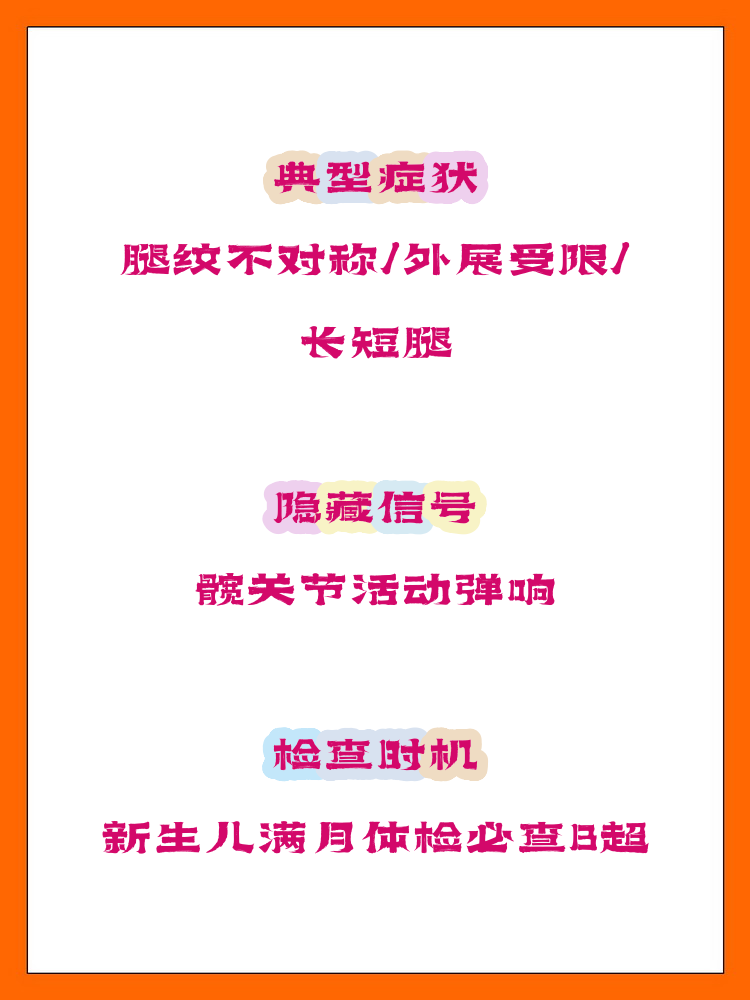 臀部及大腿皮纹不对称脱位侧的臀部和大腿皮肤褶皱数量增多深度加深,与健侧形成明显不对称这一表现源于髋关节脱位后周围肌肉发育失衡,导致皮肤张力分布异常髋关节外畸形患儿髋关节可能呈现外展外旋畸形,下肢呈“蛙式位”类似青蛙腿部姿势此类畸形在新生儿期即可出现,但需通过专业查体。