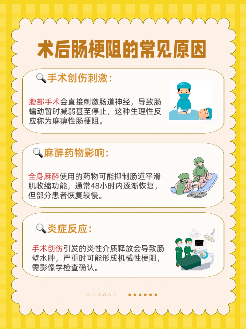 7、引起肠梗阻的原因主要分为机械性动力性和血运性三类,具体病因及预防提示如下一机械性肠梗阻由肠道物理性阻塞或结构异常导致,常见病因包括肠腔内堵塞儿童吞食异物如玩具零件硬币或肠道寄生虫感染如蛔虫聚集老年人膳食纤维摄入不足导致便秘,粪便干结形成粪石堵塞肠道其他长期便秘。