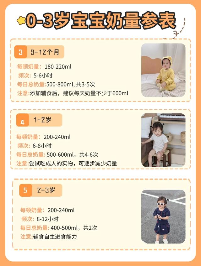 0-3岁宝宝奶量参考表,按阶段喂养不迷茫