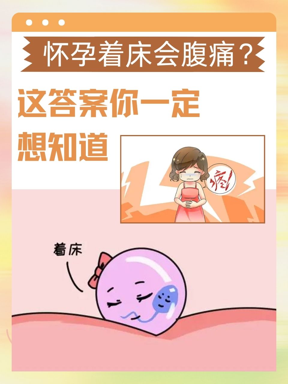 回答有些腹痛是生理性的,即因为怀孕所引起的正常反应,但有些却是病理性的,可能预示着流产等危机的发生1生理性腹痛孕早期,很多准妈妈总感觉有些胃痛,有时还伴有呕吐等早孕反应,这主要是由孕早期胃酸分泌增多引起的这时要注意饮食调养,膳食应以清淡易消化为原则,早餐可进食一些烤馒头片或苏打饼干。