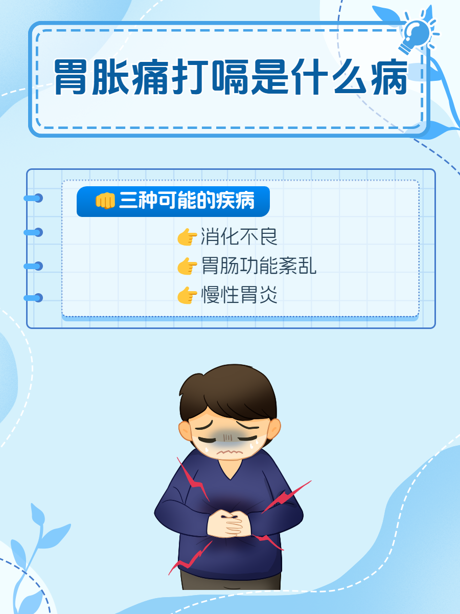 慢性胃炎伴消化道梗阻慢性胃炎时,胃壁吸收气体的能力下降,胃蠕动减慢,易导致胃气增多和腹胀同时,损伤的胃黏膜与胃酸接触,刺激神经产生胃痛综上所述,胃胀气胃痛的原因多种多样,可能与食物情感以及胃部疾病等多种因素有关在出现此类症状时,建议及时就医,以便准确诊断并采取相应的治疗措施;胃痛胀气打嗝的原因主要有以下几点慢性胃炎慢性胃炎发作时,胃的消化功能会受到影响,不能及时将胃内的食物消化排空,导致大量气体产生,对胃黏膜造成刺激,从而引起胃胀胃痛打嗝等症状消化性溃疡消化性溃疡主要包括胃溃疡和十二指肠溃疡由于胃黏膜已经出现溃疡面,胃酸更容易对胃壁造成腐蚀;胃痛胃胀胃溃疡是常见的胃部问题,这些症状往往与幽门螺杆菌的感染密切相关幽门螺杆菌是一种能够在胃部强酸环境中生存的细菌,它会导致胃黏膜损伤,进而引发各种胃部疾病为了缓解这些症状并预防幽门螺杆菌的感染,以下三个妙招或许能帮到你一规律饮食,注重食材与口腔卫生 规律饮食保持三餐规律,避免暴饮暴食或长时间不吃规律。