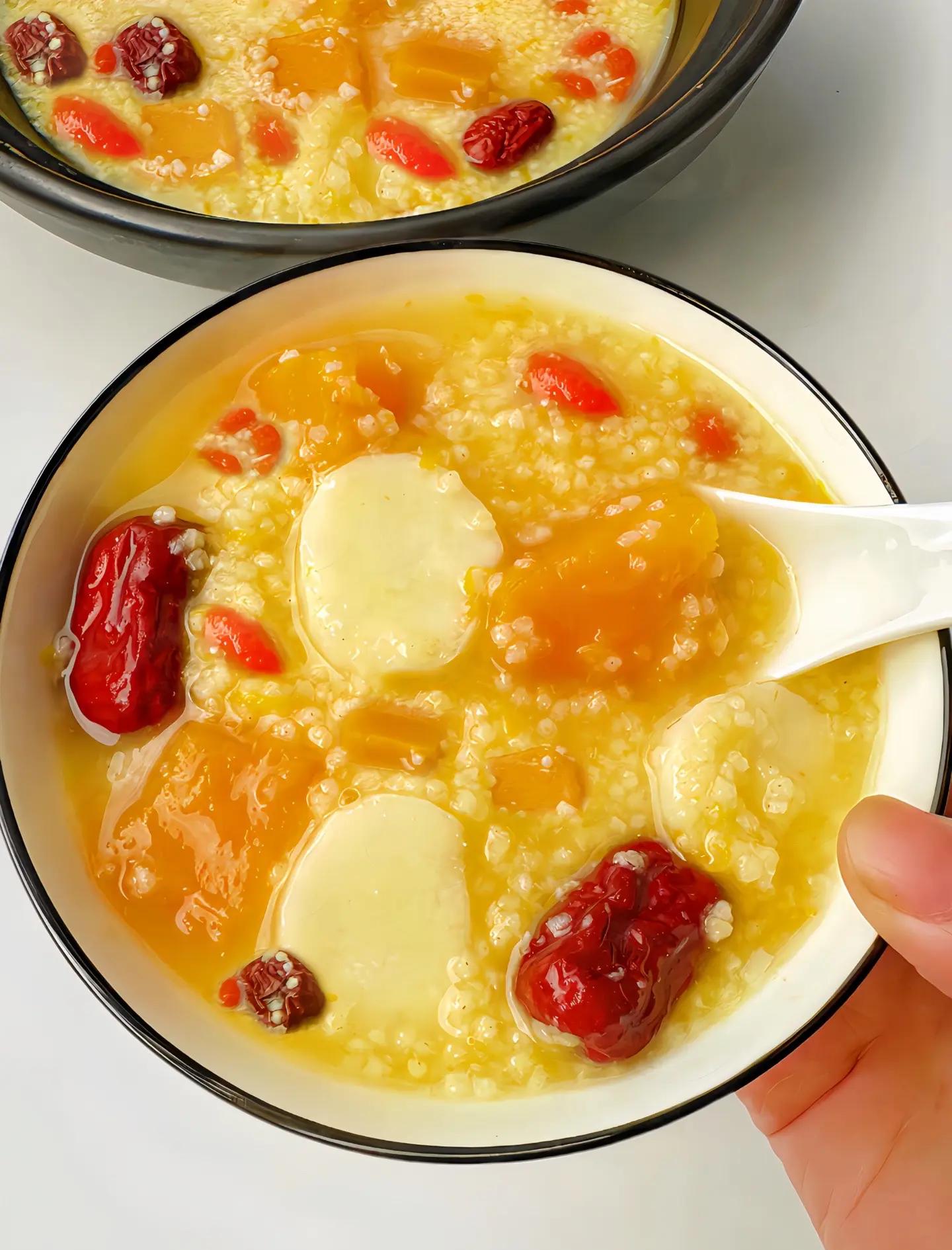 一小米南瓜粥 操作方法南瓜,红枣,小米,罗朗德核桃油,食材洗净放入锅中,放入适量的水煮至浓稠20分钟左右,盛出淋入核桃油即可 二苹果小米粥 操作方法苹果,小米,红枣,枸杞,罗朗德核桃油,食材洗净放入锅中,放入适量的水,煮20分钟左右,加入枸杞煮至浓稠,盛出淋入核桃油即可 三香菇肉末小米粥。