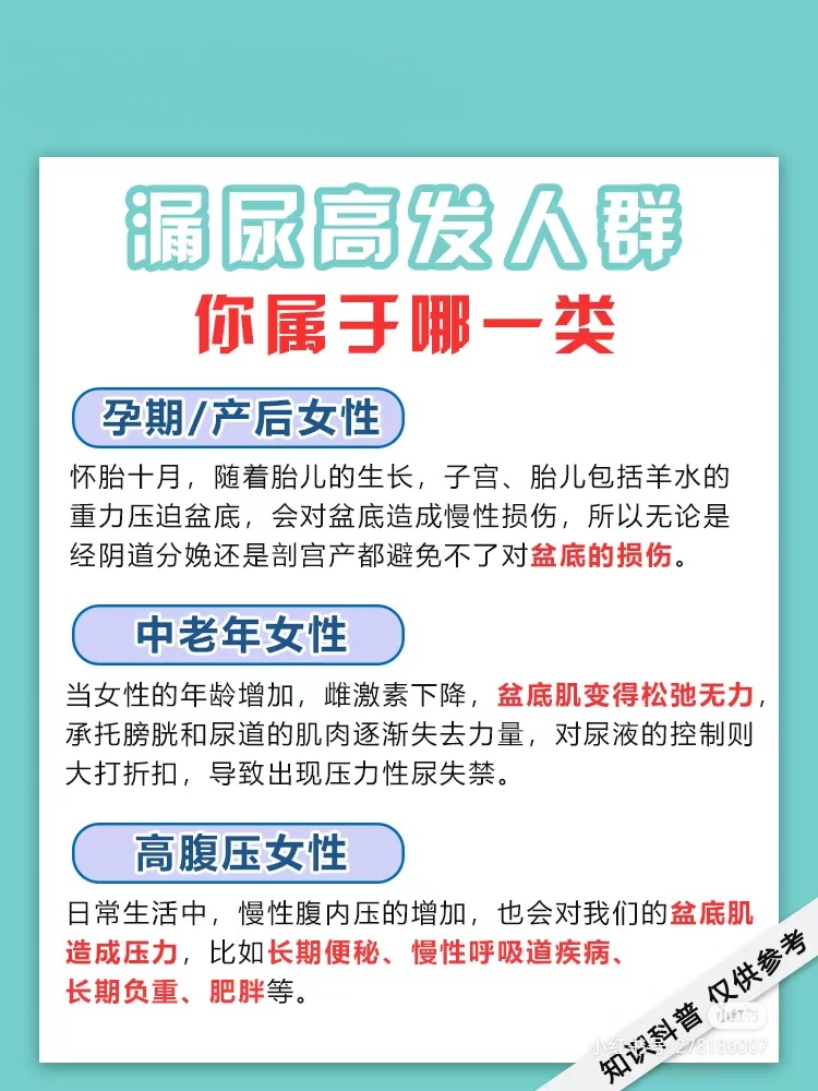 8、尿失禁是指尿液不自主地从尿道外口流出的一种病症,属于泌尿系统常见症状其分类及表现如下压力性尿失禁通常在腹压增加时发生,如咳嗽打喷嚏大笑或运动时,尿液不自主流出多见于经产妇,因妊娠分娩导致盆底肌损伤,尿道周围支撑结构功能减弱绝经后女性因雌激素水平下降,盆底组织退化,风险。