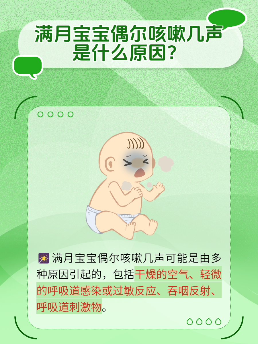 9、新生儿偶尔咳嗽两声可能由生理或病理因素引起,需结合具体情况判断一生理性原因1呼吸道分泌物积聚新生儿呼吸道发育尚未完善,喉部或气管可能因分泌物如残留羊水黏液积聚而刺激咳嗽,属于正常代偿反应2吞咽反射不协调吞咽功能未成熟时,若进食过快或胃食管反流,可能因误吸少量液体或空气而引发短暂咳嗽3环境。
