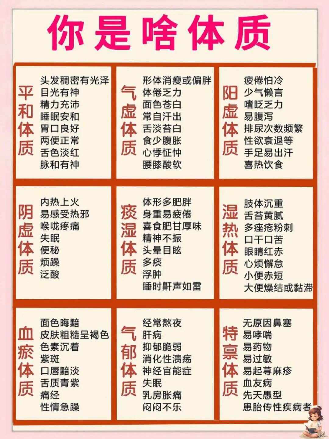气虚体质的表现 气虚体质的核心特征是机体功能衰退能量供应不足,具体表现如下1 四肢乏力气虚导致元气耗损,身体器官运转效率降低,新陈代谢减慢,能量生成不足患者常感肢体沉重活动后易疲劳,甚至日常轻度劳动后即出现明显倦怠感2 面色苍白气血不足影响全身灌注,面部毛细血管收缩,局部血流量减。