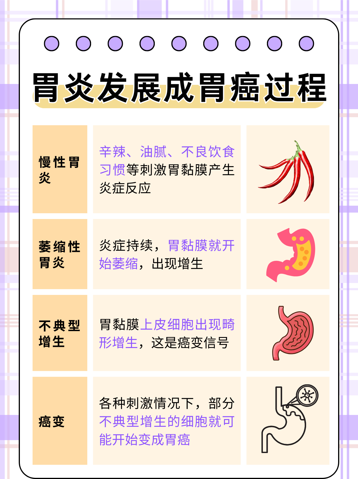 2、引起胃癌的原因主要有以下方面幽门螺杆菌感染幽门螺杆菌是定植于胃内的细菌,其产生的毒素和酶会损伤胃黏膜,引发慢性炎症长期炎症刺激导致胃黏膜上皮细胞反复修复再生,增加基因变异风险,最终可能发展为胃癌流行病学显示,幽门螺杆菌感染率高的地区胃癌发病率显著升高,我国因感染高发成为胃癌重灾区;导致胃癌的原因主要包括以下几个方面一幽门螺杆菌感染幽门螺杆菌是胃癌的重要危险因素其长期感染可引发胃黏膜慢性炎症,在炎症修复过程中导致细胞变异,最终可能发展为胃癌该菌通过产生酶和毒素破坏胃黏膜防御机制,全球约半数人口受感染,发展中国家感染率更高儿童期感染者成年后患癌风险显著增加;导致胃癌的原因主要有以下几个方面幽门螺杆菌感染幽门螺杆菌长期感染胃黏膜,可因炎症反复刺激增加胃癌风险该菌主要通过口口或粪口途径传播,各年龄段均可感染,卫生条件差饮食不规律者感染概率更高有感染病史者需定期监测,及时治疗以降低风险高盐饮食高盐饮食会损伤胃黏膜,长期高盐摄入;一幽门螺杆菌感染幽门螺杆菌是胃癌的重要危险因素其长期定植于胃内,通过产生毒素和酶破坏胃黏膜防御屏障,引发慢性炎症反应持续的炎症刺激会导致胃黏膜上皮细胞异常增殖,增加癌变风险流行病学调查显示,幽门螺杆菌感染率高的地区,胃癌发病率显著升高若未及时治疗,不同年龄性别人群均可能发展为;胃癌的发生受多方面因素影响,具体如下一幽门螺杆菌感染幽门螺杆菌是胃癌的重要诱因长期感染可引发胃黏膜慢性炎症,在炎症修复过程中导致细胞异常增殖,增加癌变风险该菌感染具有普遍性,尤其在卫生条件差居住拥挤地区高发儿童感染后若未及时治疗,成年后患癌风险显著上升男性与女性感染后的风险;造成胃癌的原因主要包括以下几个方面1幽门螺杆菌感染幽门螺杆菌是引发胃部疾病的重要病原体,感染后可导致慢性胃炎胃溃疡等疾病若未及时治疗,长期炎症刺激可能诱发胃黏膜细胞癌变,是胃癌的主要危险因素之一2饮食因素长期摄入高盐食物腌制食品烟熏或烧烤类食品,可能增加胃癌风险这些食物;一幽门螺杆菌感染幽门螺杆菌是一种定植于胃黏膜的革兰氏阴性菌,其感染是胃癌的重要危险因素该菌通过尿素酶分解尿素产生氨,中和胃酸以维持生存环境同时,其代谢产物引发慢性炎症,刺激胃黏膜上皮细胞反复修复再生,过程中可能发生基因变异,增加癌变风险全球约半数人口感染幽门螺杆菌,胃癌高发地区。