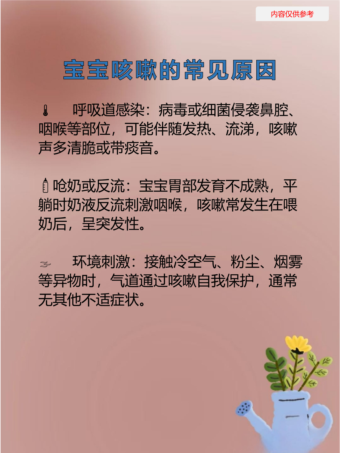 婴儿嗓子里有痰呼噜呼噜响,可通过以下方法处理一明确原因婴儿嗓子里有痰音,可能与呼吸道感染如感冒支气管炎肺炎过敏反应吞咽功能不完善或环境干燥有关呼吸道炎症刺激导致分泌物增多,形成痰液过敏时呼吸道黏膜反应性分泌黏液吞咽功能弱则可能因口水积聚产生类似声音干燥环境会使;新生儿喉咙有痰,可通过以下方法进行处理调整生活习惯喂奶后需保持新生儿竖立姿势,并轻拍其背部,可减少胃食道反流引起的痰液增多同时,避免让新生儿趴着睡,以防胃内容物反流刺激咽喉,加重痰液分泌环境改善保持室内空气流通,减少粉尘动物毛发等过敏原的接触若环境干燥,可使用加湿器将湿度维持在。