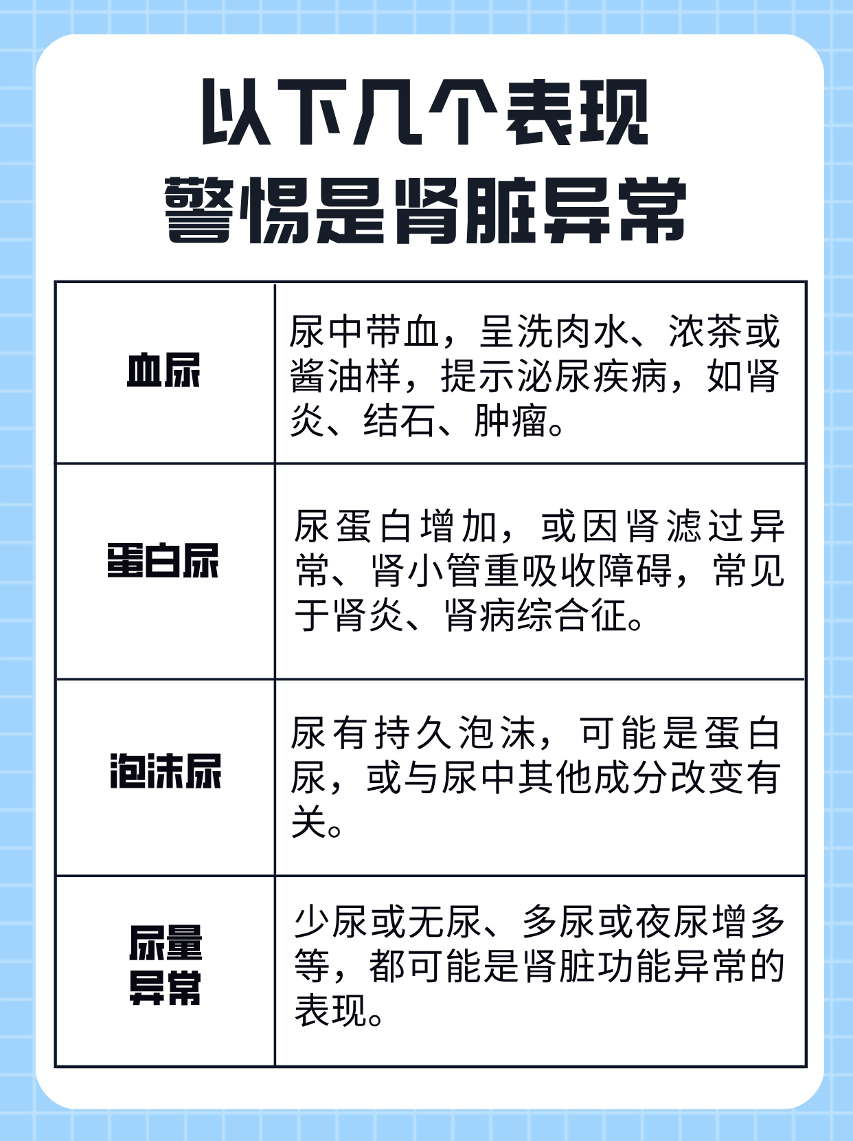 2、肾病的早期症状主要包括以下几点水肿在运动过后或者是劳累以后,可能会出现眼睑或者是下肢的水肿腰痛腰部可能会出现疼痛,特别是肋脊点肋腰点可能会有压痛或叩击痛头晕及血压升高如果肾病合并肾性高血压,会出现头晕的症状,血压也会升高贫血相关症状指甲嘴唇颜色变淡苍白,面色呈贫血;肾病的早期症状和先兆因肾病类型而异,主要包括以下几个方面对于肾炎综合征患者 尿中泡沫增多尿液中可能含有较多的蛋白质,导致泡沫增多且不易消散 尿色加深尿液颜色可能变得比平时更深,有时可能呈现为浓茶色或洗肉水样 间断性水肿患者可能出现面部眼睑或下肢的水肿,这种水肿可能是间歇性的 乏力患者可能感到全身无力,容易;尿液颜色异常如果尿液颜色变深,如呈现肉色浑浊或像洗肉水淘米水等,这可能是肾脏疾病的信号,应及时就医检查其他症状无明显原因的腰痛和贫血也可能是肾炎早期的表现这些症状虽然不特异,但结合其他征兆出现时,应高度怀疑肾脏疾病的可能性总之,对于上述早期征兆,尤其是年轻人和有上述症状者;女性肾病的早期症状可能包括以下几点1疲劳和乏力肾脏功能异常时,无法有效清除体内代谢废物,导致毒素堆积,影响能量代谢,进而引发持续性的疲劳感,即使休息后也难以缓解2水肿肾脏排泄功能下降会导致水钠潴留,常见表现为脚踝腿部或眼睑的水肿,晨起时尤为明显若伴随尿量减少,需警惕肾脏损伤3。