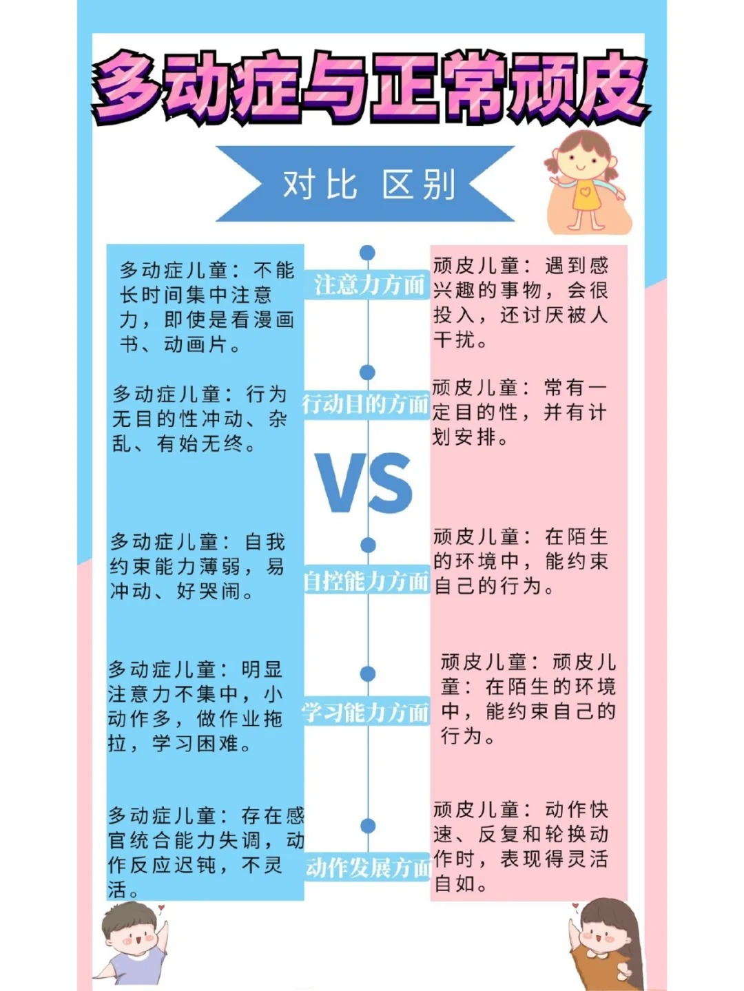 13、小儿多动与小儿多动症存在区别,且多动症需根据病情采取相应治疗教育及饮食管理措施具体内容如下小儿多动与小儿多动症的区别 正常好动的孩子与多动症孩子存在明显差异正常好动的孩子对有兴趣的事情能专心致志,很少分散注意力,而多动症孩子难以做到正常儿童虽表现散漫,但能意识到并控制自己的。
