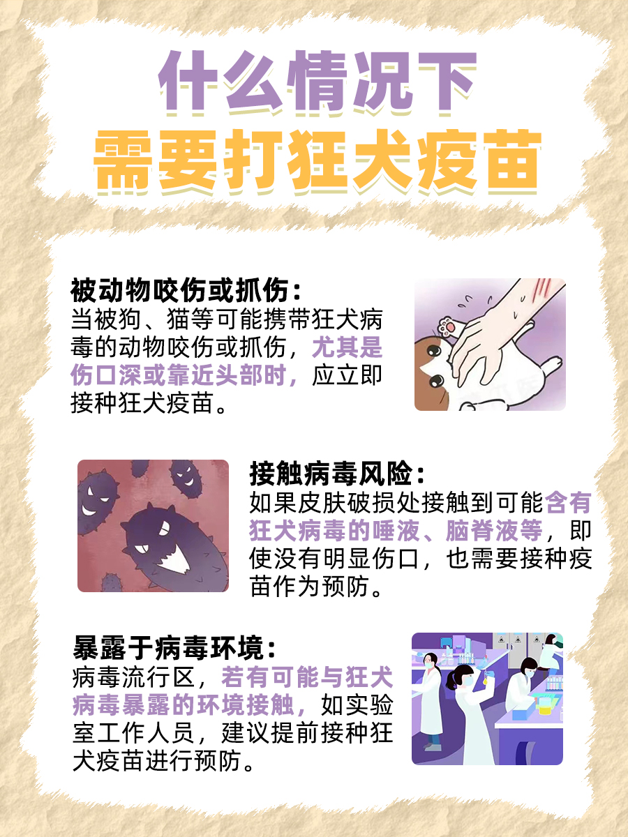 如果是头面部严重咬伤,进入身体里的动物唾液较多,病毒量较多,可能不到1个月即可发病,这时即使接种疫苗也可能来不及,建议头面部严重的咬伤,除接种疫苗外还应接种免疫球蛋白如果是腿部轻微咬伤或抓伤,局部神经较少,则潜伏期较长,有足够的时间通过疫苗接种,使身体产生足够的抗体预防狂犬病狂犬病为暴露后再进行预防,不同于其它疫苗为提前接种,就是因为狂犬病潜伏。