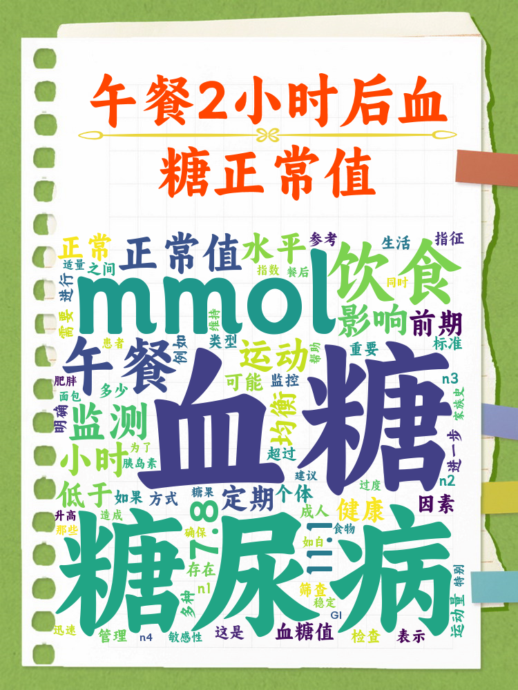 15、若处于78~111mmolL之间,提示糖耐量异常,表明机体对葡萄糖的调节能力下降老年人因身体机能衰退,餐后2小时血糖控制需更严格,以降低糖尿病并发症风险生活方式不健康者如长期高糖饮食缺乏运动也易出现异常三随机血糖正常人随机血糖应小于111mmolL,反映非空腹状态下的血糖水平若。